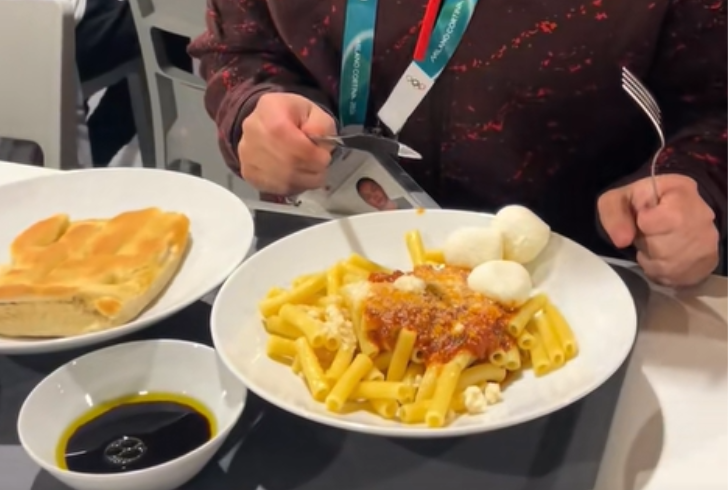 The behind-the-scenes glimpse came from a TikTok video posted on February 3 by Julia Gosling, featuring teammates reacting to their first dinner in Italy. While Italian cuisine carries high expectations, the athletes kept it real by showing exactly what landed on their plates.